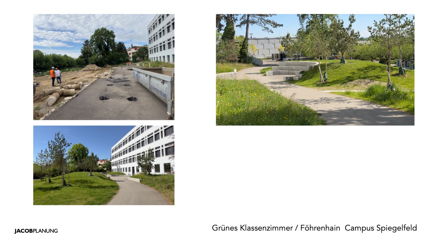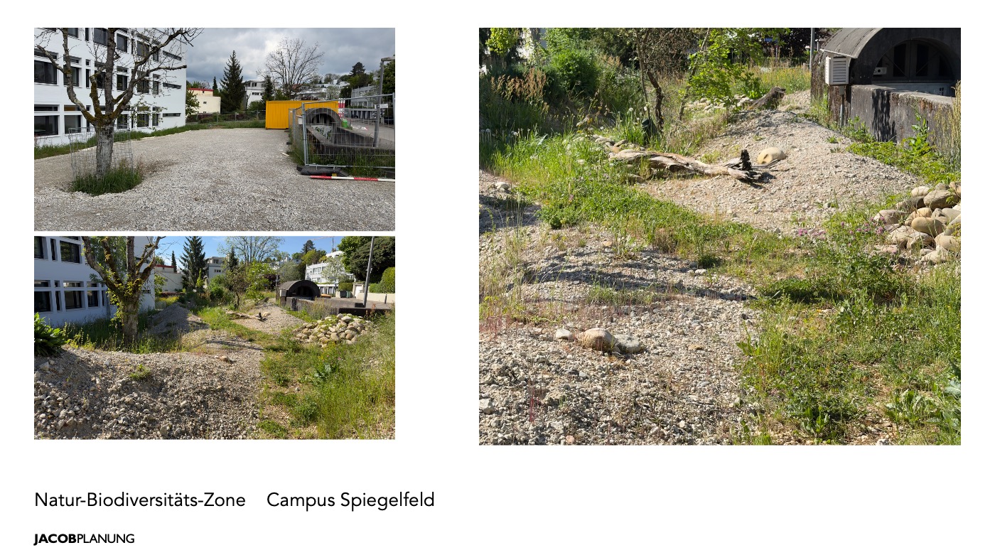 Der Campus Spiegelfeld in Binningen zeigt, wie aus einer funktionalen Schulanlage ein robuster, naturnaher und sozial wirksamer Freiraum entstehen kann. Auf über 9’000 m² wurde der Aussenraum in enger Abstimmung mit Schulleitung, Bauherrschaft und Generalplaner neu geordnet und gestärkt. Ziel war kein dekoratives Grün, sondern ein belastbarer Schul- und Quartierfreiraum, der Unterricht, Bewegung, Aufenthalt, Ökologie und öffentliche Nutzung verbindet.